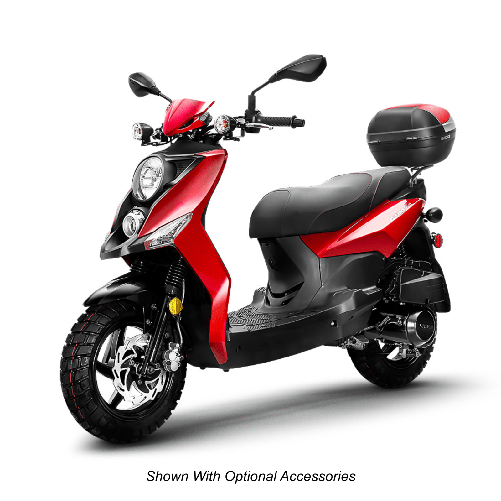 The Cabo features a long, sport seat perfect for two riders, including built-in passenger foot rests. Under-seat space is ample for a few groceries or a helmet, and the rear grab bar gives the passenger an extra sense of security. The Cabo also has sport-tuned brakes, including a hydraulic front disc brake with upgraded rotor, as well as a projector headlight, and even digital gauges! The Lance Cabo packs the looks and capabilities of an off-road machine into a practical, every day scooter perfect for city streets and country roads alike.