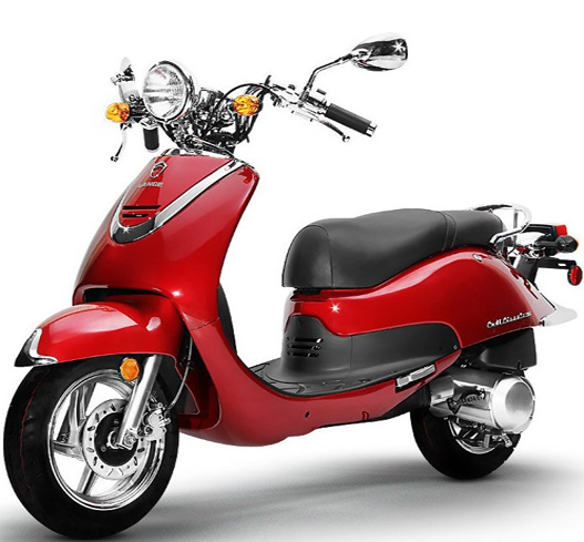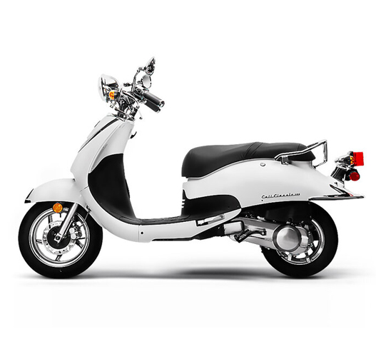 The Cali always turns heads when display on our showroom, and when it’s out cruising around town. It’s hard to find another scooter out there that blends classic scooter looks, with motorcycle elements, all in a classy and reliable package. The Cali Classic has elegant body lines, beautiful paint applications, chrome accents everywhere, a distinct headlamp, and comfortable seat.